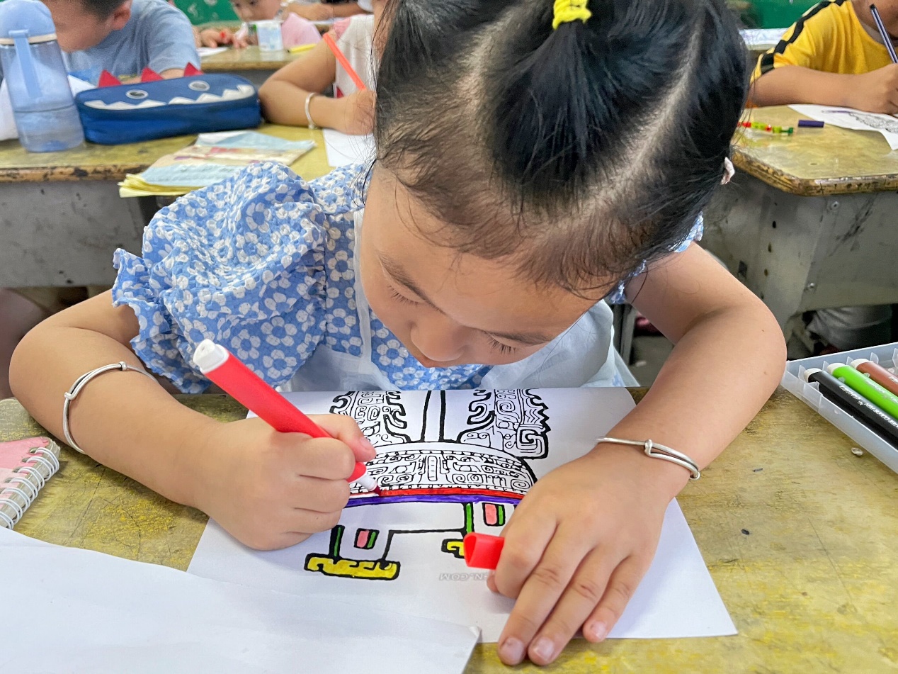 七月二十六日,湖北第二师范学院四叶草青年志愿服务的志愿者们给监利的孩子们带来了一节特别的美术课,通过ppt孩子们观察青铜器,然后再用彩笔画出自己心目中的青铜器,充分运用自己的想象力。这样一节课,传承了中国传统文化,又不同于普通的美术课,既新奇又好玩,给孩子们了一次非常特别的体验,深受小朋友们喜爱。