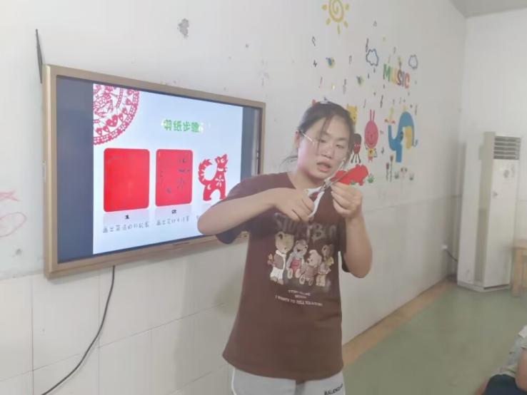 于是,在七月二十六号,湖北第二师范学院的志愿者们给监利的孩子们带来了一节有趣的剪纸课堂,志愿者们购买了红色的纸,教孩子们怎么剪出各种不同的花样,孩子们的作品各式各样,独一无二。课堂氛围轻松愉快,同学们都积极加入到了课堂中,我相信在未来,随着中国文化的不断传承和发展,剪纸艺术也将继续发扬光大,为人们带来更多的美好和惊喜。