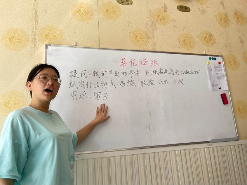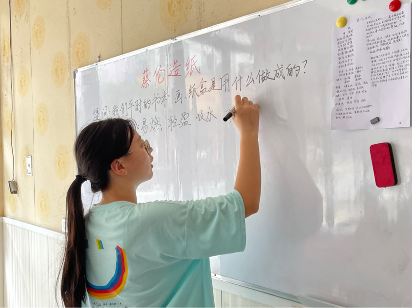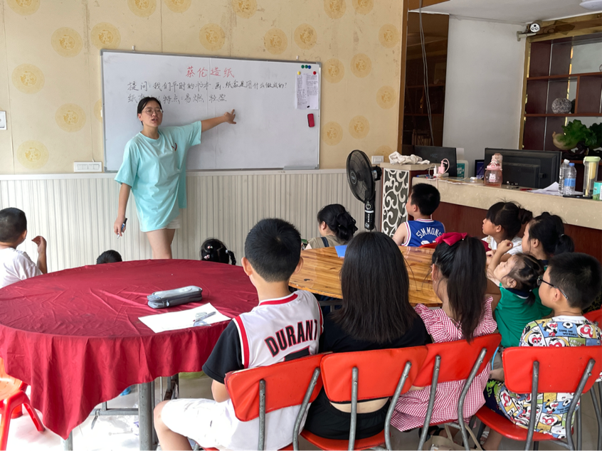 为使同学们从纸的发展中感受中国古人的聪明才智。7月30日,湖北第二师范学院四叶草青年志愿服务队第三分队志愿者于监利开展了一节以“造纸”为主题的语文课。
