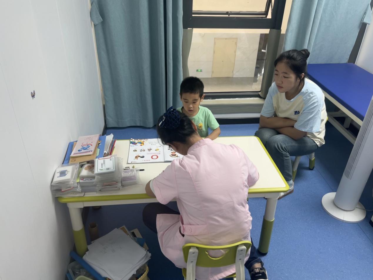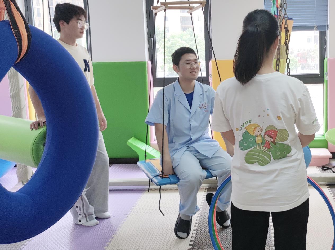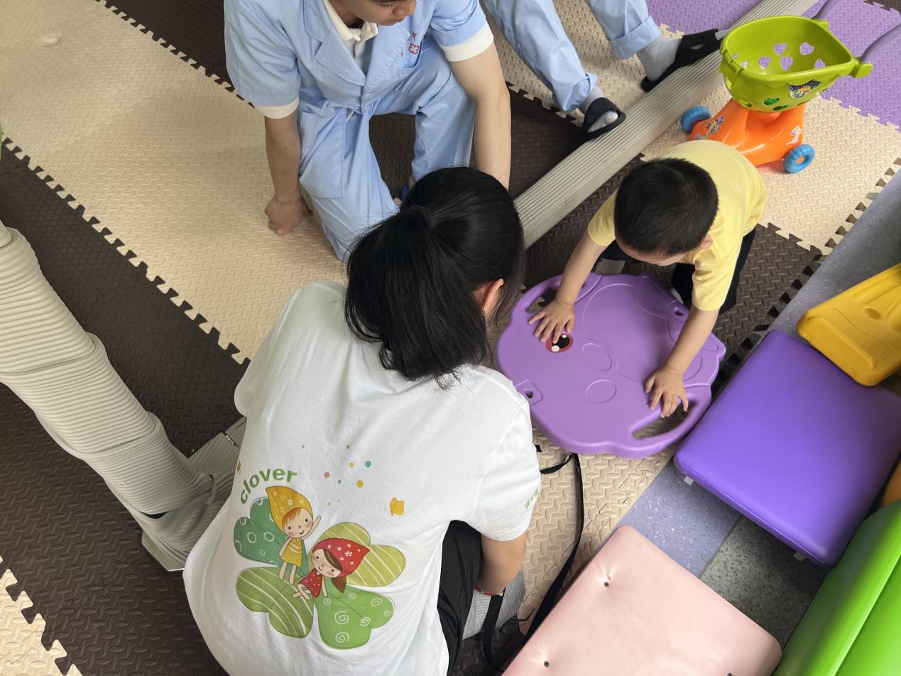 (图为四叶草青年志愿服务队队员辅助医生对小朋友进行康复治疗)