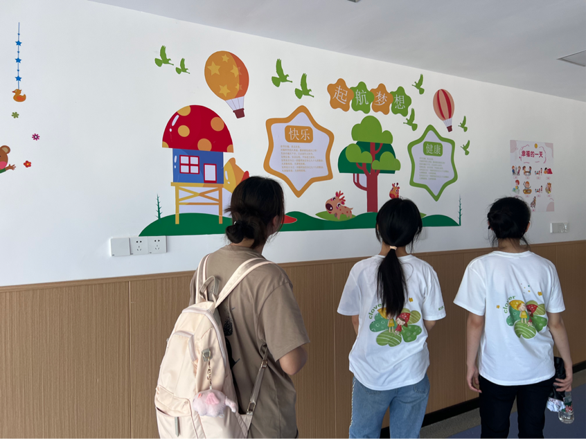 (图为成员们参观孩子们的教室环境)
