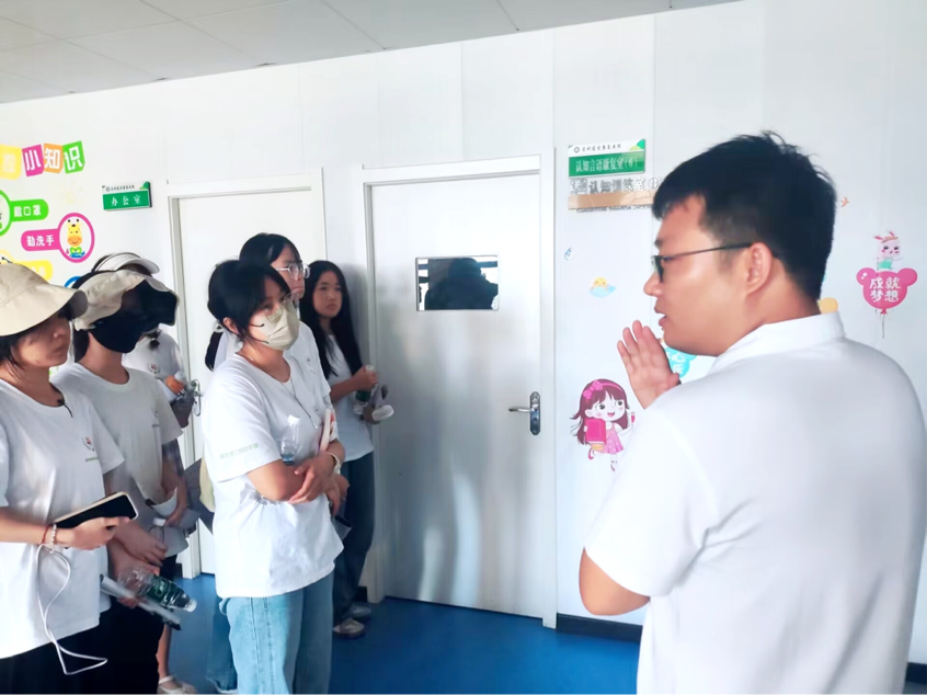 (图为特殊教育老师向同学们介绍认知语言康复室)