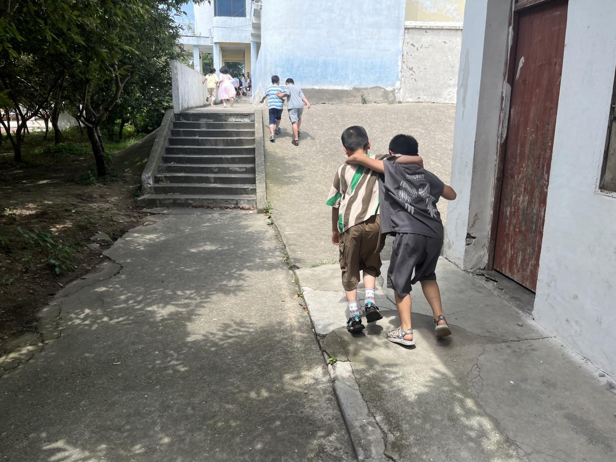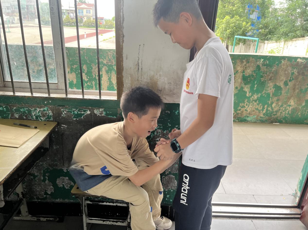 课间,志愿者很少回办公室,而是在班上陪学生玩耍。桃花小学五年级的刘景燃告诉志愿者他期末的数学考得很棒,并且以后也想成为一名老师。志愿者对其理想给予充分肯定,勉励他再迈入初中后也要保持优良成绩,争取考上荆州中学。