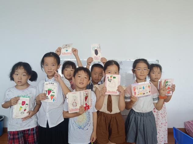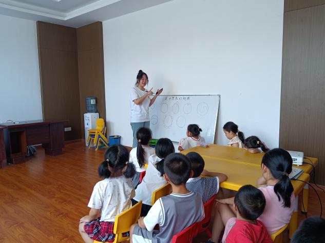 简单的图形可以联想出的图形就更简单,可以延伸出的事物也更多。志愿者在课堂上引导孩子们,打开思路,拓宽对事物认知的边界。志愿者先让孩子们对黑板上画的圆进行发散性的创作,在孩子们眼中,这个圆是太阳、花朵、西瓜等等。志愿者还向孩子们展示了打开脑洞一分钟系列的多张图片,孩子们通过观察图片中物体的形状、颜色,多角度寻找灵感,使它变成更多种不一样的东西。同时,孩子们通过绘画使想象具体化,他们尝试给这些图形增添装饰与场景,在绘画中进行思维训练,邂逅事物的更多可能。通过此次脑洞大开的课堂,激发了他们进行自由探索和试错的积极性,也培养了孩子们的创造力和想象力,让孩子们在玩乐中学习。