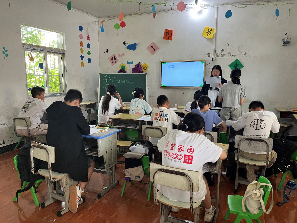(图为志愿者在监利市分盐镇回市小学进行语文的教学活动)