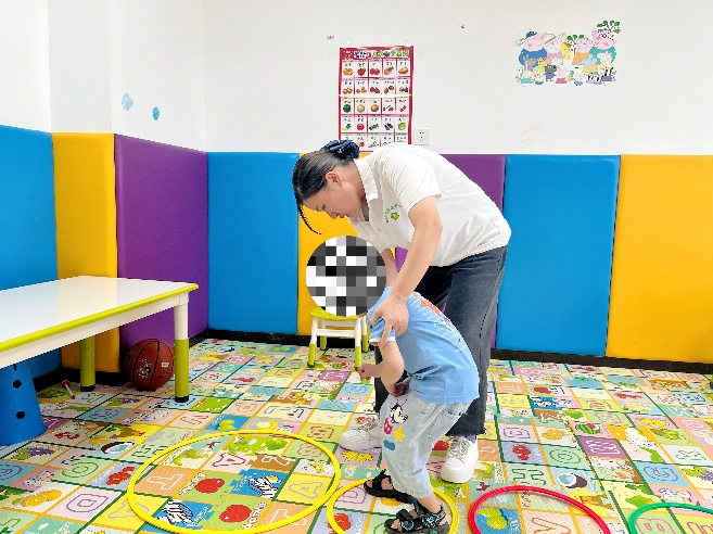 (图为监利市残疾人康复中心的刘老师在带领小朋友们进行游戏活动)