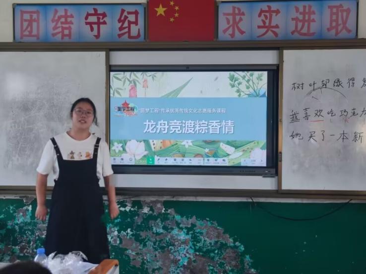 (通讯员 邹贤艳)端午节是我国的传统节日,有着悠久的历史传承、深厚的文化底蕴。为让乡村留守儿童了解端午传统文化,了解端午节的习俗,传承和弘扬中华传统文化,提高儿童对民族文化的认识,涵养家国情怀,展现民族文化自信。7月29日,湖北第二师范学院四叶草青年志愿服务队第二小分队于监利市分盐镇桃花小学开展了以“龙舟竞渡粽香情”为主题的传统文化系列活动。