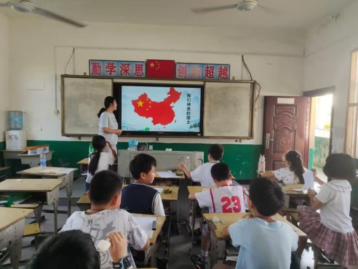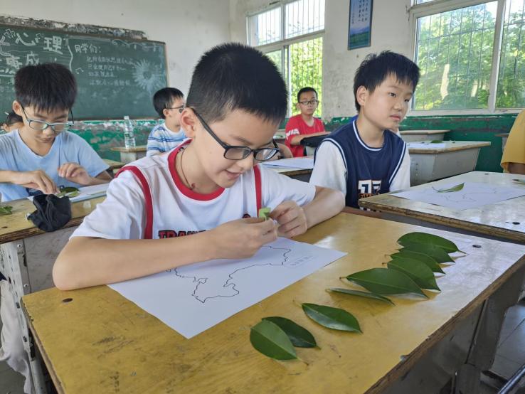 (通讯员 邹贤艳)暖暖爱国情。每一片树叶都记录着独一无二的生命密码,一片小小的树叶又能构建出怎样的异想世界?为培养乡村留守儿童对祖国的热爱,体会到从大自然中去寻找美、发现美。8月1日,湖北第二师范学院四叶草青年志愿服务队第二小分队于监利市分盐镇桃花小学开展了以“从树叶中看我的祖国”为主题的手工课程。活动前,同学们积极地收集了各种各样的树叶:扇形的、椭圆形的、金黄的、碧绿的……这些形态万状的树叶是大自然给予同学们最好的礼物。