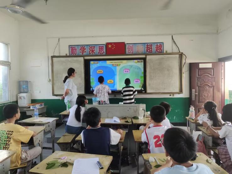(图为学生上讲台与志愿者互动中国的省份)