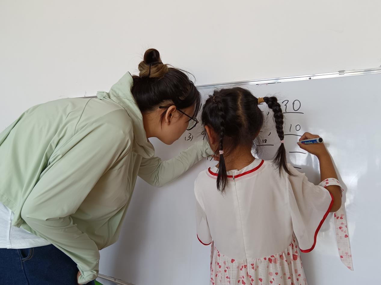 课堂开始,志愿者为孩子们设定问题情景,将数学课带进实际生活,。孩子们面对实际问题积极思考,运用计算帮助情景中的主人公解决问题。同时,志愿者将游戏和计算结合起来,提高算术的趣味性,孩子们在游戏中锻炼思维能力,提升数学素养。在整个教学过程中,志愿者带领孩子们探究乘法的相关问题,和孩子们进行了许多趣味互动,孩子们积极参与,全身心投入到课堂之中,领悟数学魅力。本次课程的开展,让孩子们徜徉在数学的海洋之中,享受数学思维带来的快乐。