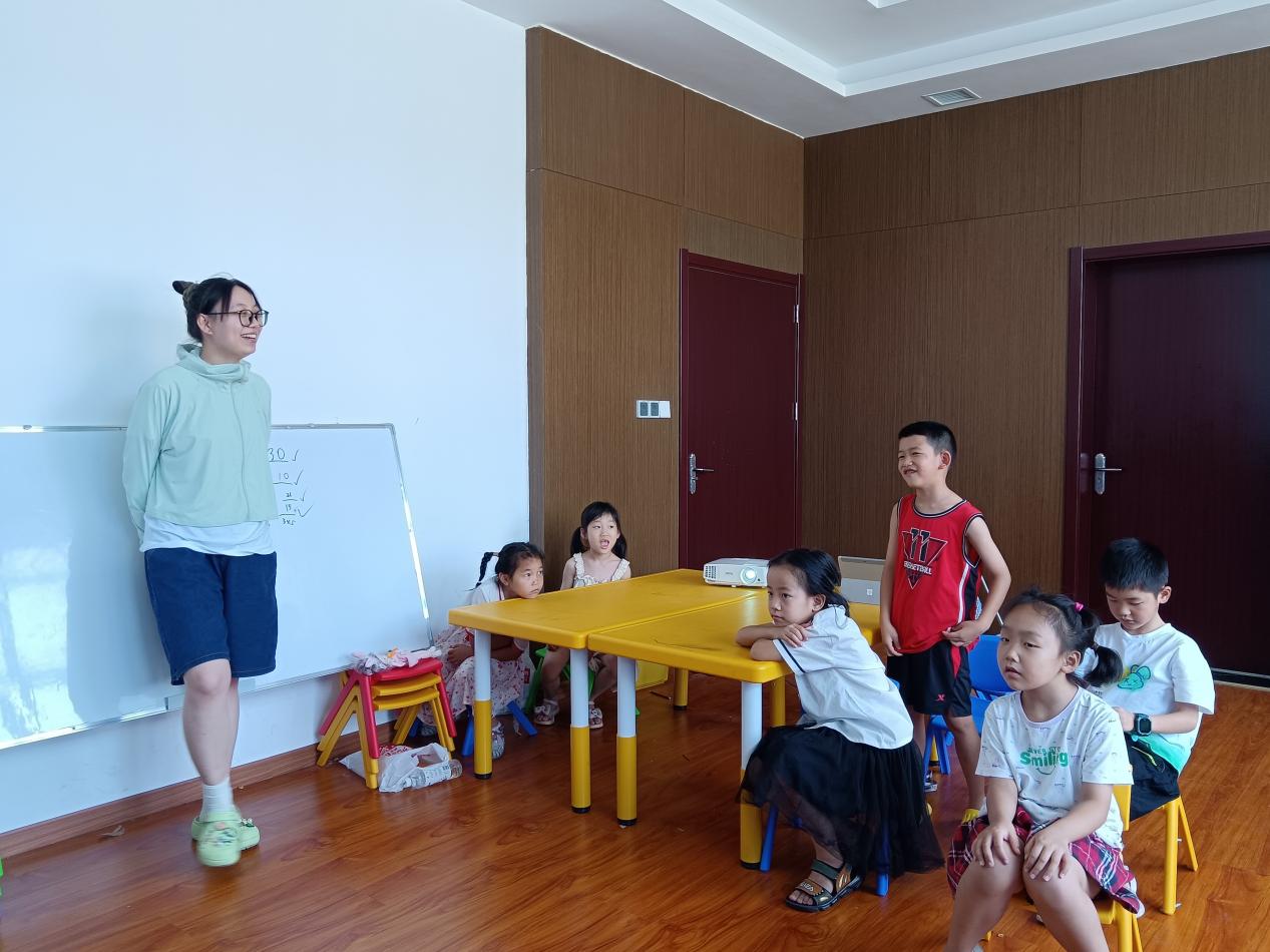 (通讯员 姜显文)为了开拓孩子们的数学思维,激发学习乐趣,7月13日,湖北第二师范学院四叶草青年志愿服务队第五分队于监利市毛市镇浩宇本部开展趣味数学课。志愿者们将游戏融入课堂,引起孩子们对于数学课的兴趣。
