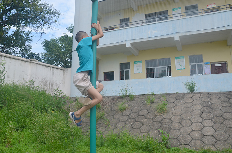 (图为当地学生表演自己攀爬能力)