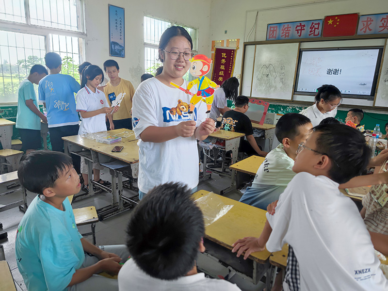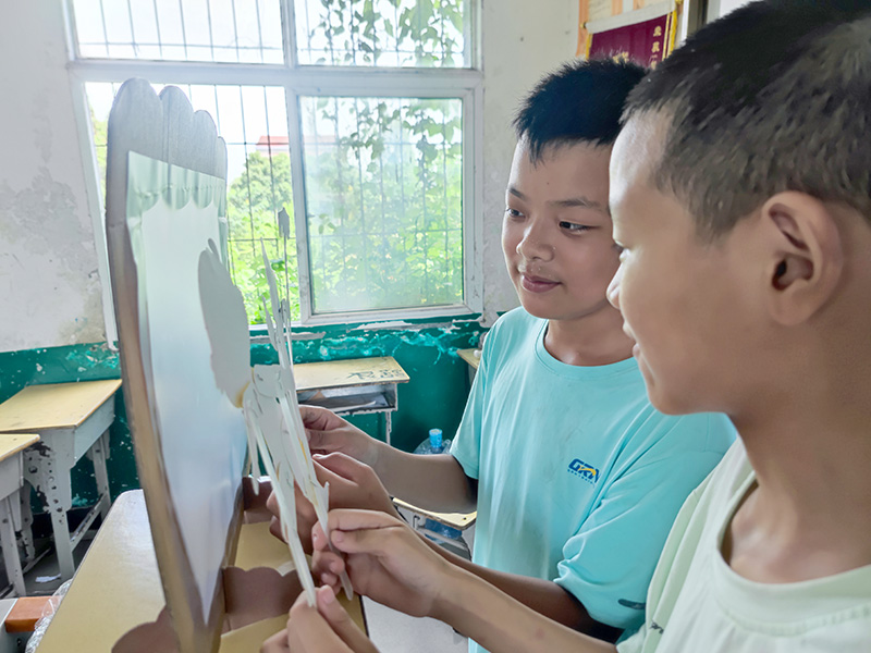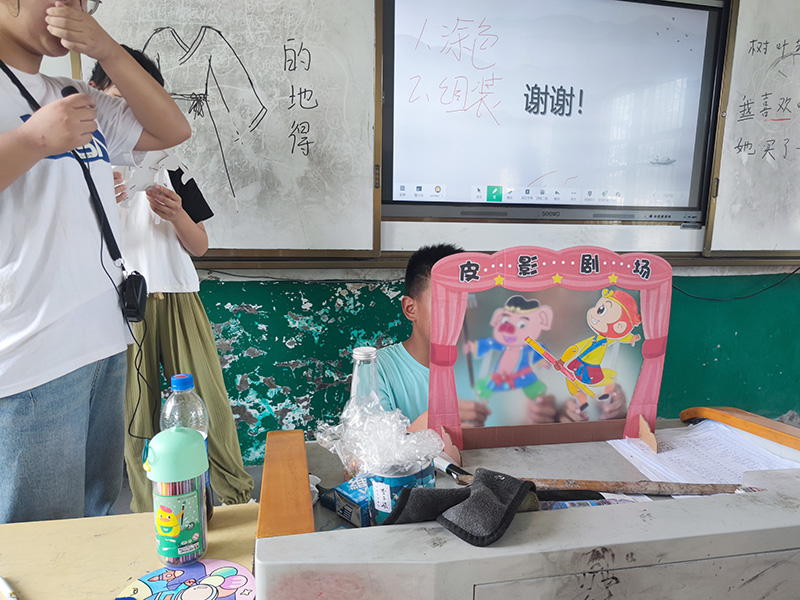 (通讯员 夏玉博)在当代社会,传统文化的普及成为了一项重要任务。为了让农村地区的孩子们能够更多地接触到传统文化,于7月5日,湖北省第二师范学院四叶草青年志愿服务队开展活动,到分盐镇开展为期27天的三下乡活动,为乡区学生宣传普及传统文化。志愿者安排一节皮影戏课,通过带领学生一起参与皮影戏,让学生了解皮影戏的由来。活动开始时,志愿者向孩子们介绍了皮影戏的历史和意义。他们讲述了皮影戏的起源、发展以及其在传承中华民族优秀传统文化方面发挥的作用。接着让孩子们制作皮影,在准备好的道具中,手把手地教导孩子们拼装皮影。在结束了皮影人物的制作之后,志愿者开始选学生配合出演皮影戏。在志愿者的指导下,学生小心翼翼地将自己制作的皮影人物放置在桌面上,满怀期待地等待表演的时刻。这个过程既加深了他们对皮影的认识,也培养了他们的动手能力和团队合作精神。虽然最后的舞台剧并不出彩,却也包含了学生对于传统文化的热爱。课堂传递出对于陈旧和传统文化的渴望,孩子们对于了解历史的需求以及对文明的敬仰。此次活动不仅让孩子们亲身体验了传统文化的魅力,也激发了他们对传统艺术的兴趣和热爱。通过志愿者的辛勤努力,农村地区的孩子们收获了一次难忘的传统文化之旅。通过志愿者三下乡为留守儿童带去的特色课,孩子们的见识得到了提升。志愿者也通过普及传统文化,激发了孩子们对传统艺术的热爱与兴趣。这样的活动不仅丰富了农村地区的文化生活,也帮助孩子们更好地了解和传承中华民族的优秀传统文化。
