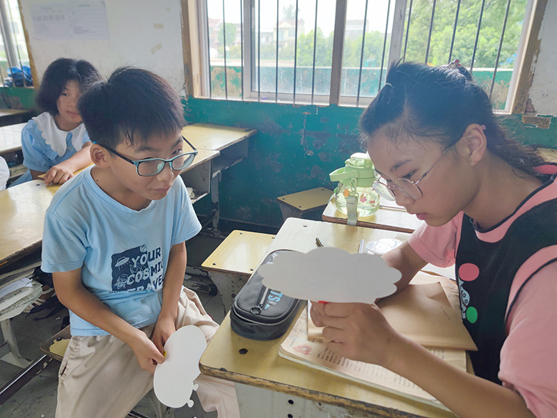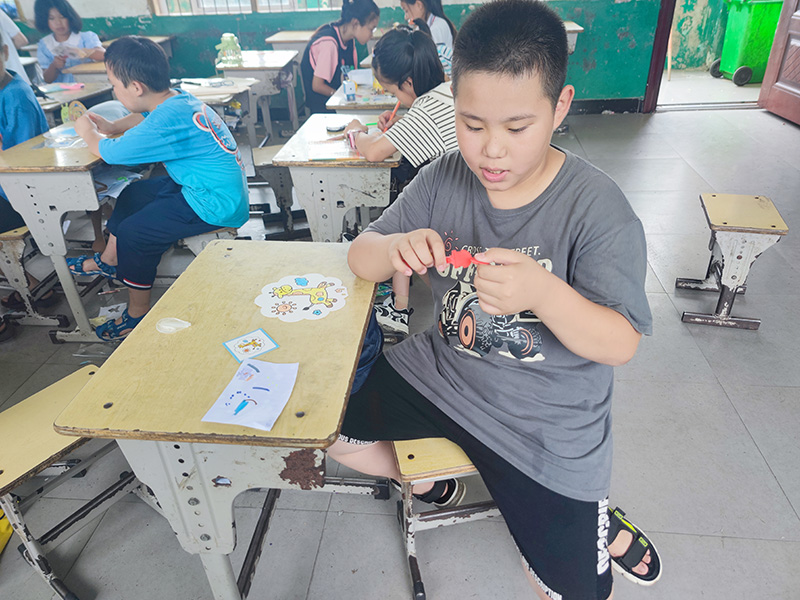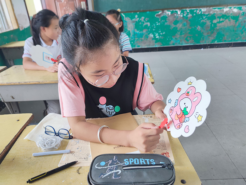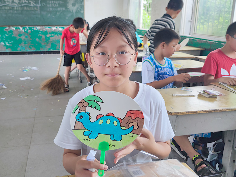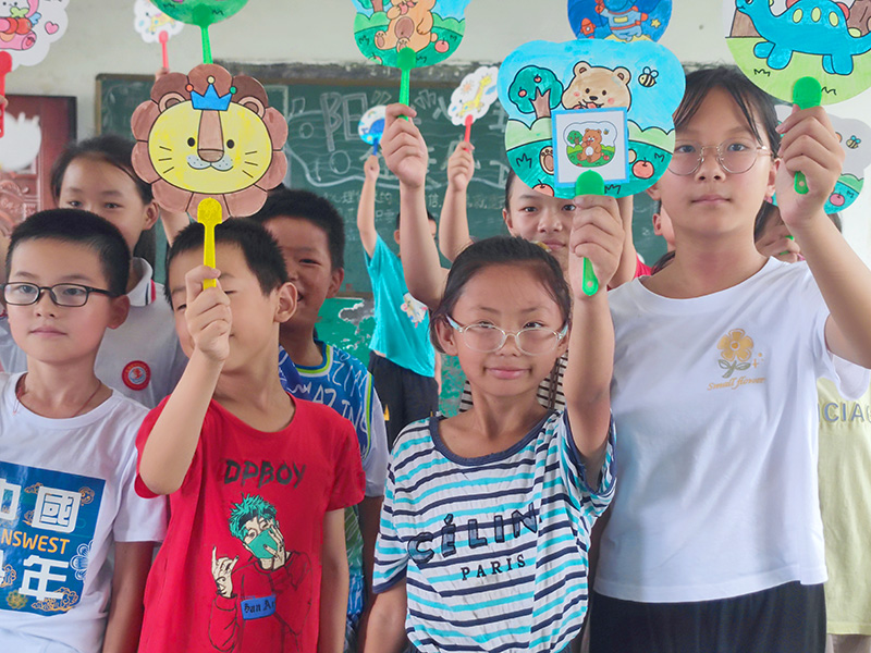 (通讯员 夏玉博)三下乡带给学生追寻更好的未来的机会。为了助力乡村学生实现梦想,7月5日,湖北省第二师范学院四叶草青年志愿服务队到分盐镇开展为期27天的三下乡活动,趁着暑期下乡支教。在对课程的安排上,志愿者讲究“因地制宜”,不用固定课堂来安排学生上课,同时为了向学生传递出应该随机应变的思维模式。在原本的英语课上,学生们组织朗读课文。然而,突然一阵停电打断了学习,在假期,酷暑难耐,在没有了电风扇之后,学生只能用书本为自己散热。面对无心学习的学生,志愿者决定作用双手来创造一个美妙的课堂。正因天气很热,志愿者决定带来学生制作扇子,文化课也转为手工课。志愿者为学生们分发纸张、彩笔等工具,鼓励学生们相互帮助,一起制作自己的扇子。在填色过程中,图案有相同的,所以在颜色的选择上学生发挥了自己的创意,保持整体的同时保留个性。制作完扇子后,学生们展示和分享了他们丰富多样的扇子设计。有的用鲜艳的颜色绘制花朵,有的画上了自己最喜欢的动物,还有的在扇子上写下对美好生活的愿景。在课程安排中,尽管停电打断了原本的学习计划,但也因此开展了一节兴趣课,学生们在制作扇子的过程中找到了快乐,在静下心后,也不再因为教室停电而感到炎热。课程的安排是随机的,但也考验了志愿者的应变能力,志愿者们的辛勤付出,为实现个人成长和价值,为共同构建一个更加公平、和谐和美好的社会做出贡献。也希望学生们不仅感受到的是手工课的快乐,同时也能做到随机应变,即使在困难时刻也能够积极应对并创造美好。