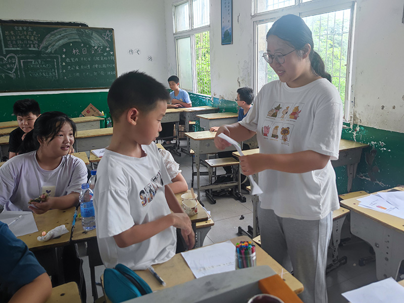 (通讯员 夏玉博)为了通过艺术创作的方式,培养学生们对友谊的珍视和关心他人的思维,通过传递祝福,为学生日常生活增添正能量。7月22日,湖北第二师范学院四叶草青年志愿服务队第二分队的志愿者们为监利市分盐镇桃花小学的学生们带去了艺术课程。在课堂上,志愿者带领学生进行艺术游戏,让学生在上面画出一杯奶茶,写上祝福后送给朋友。