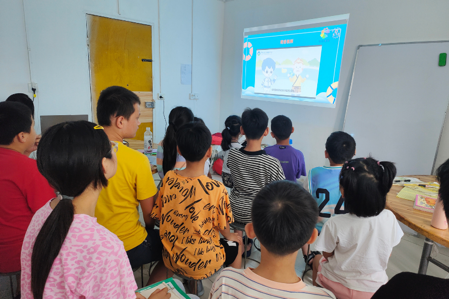 (通讯员 袁恭棁)7月18日下午,湖北第二师范学院四叶草青年志愿服务团队第五分队在监利市红城乡浩宇制衣中心进行了安全防溺水教学活动,此次活动主要是采取观看直播的形式,跟各地学生互动学习,在之前学习有关溺水知识之后,学生们此次学习更加轻松有趣了。