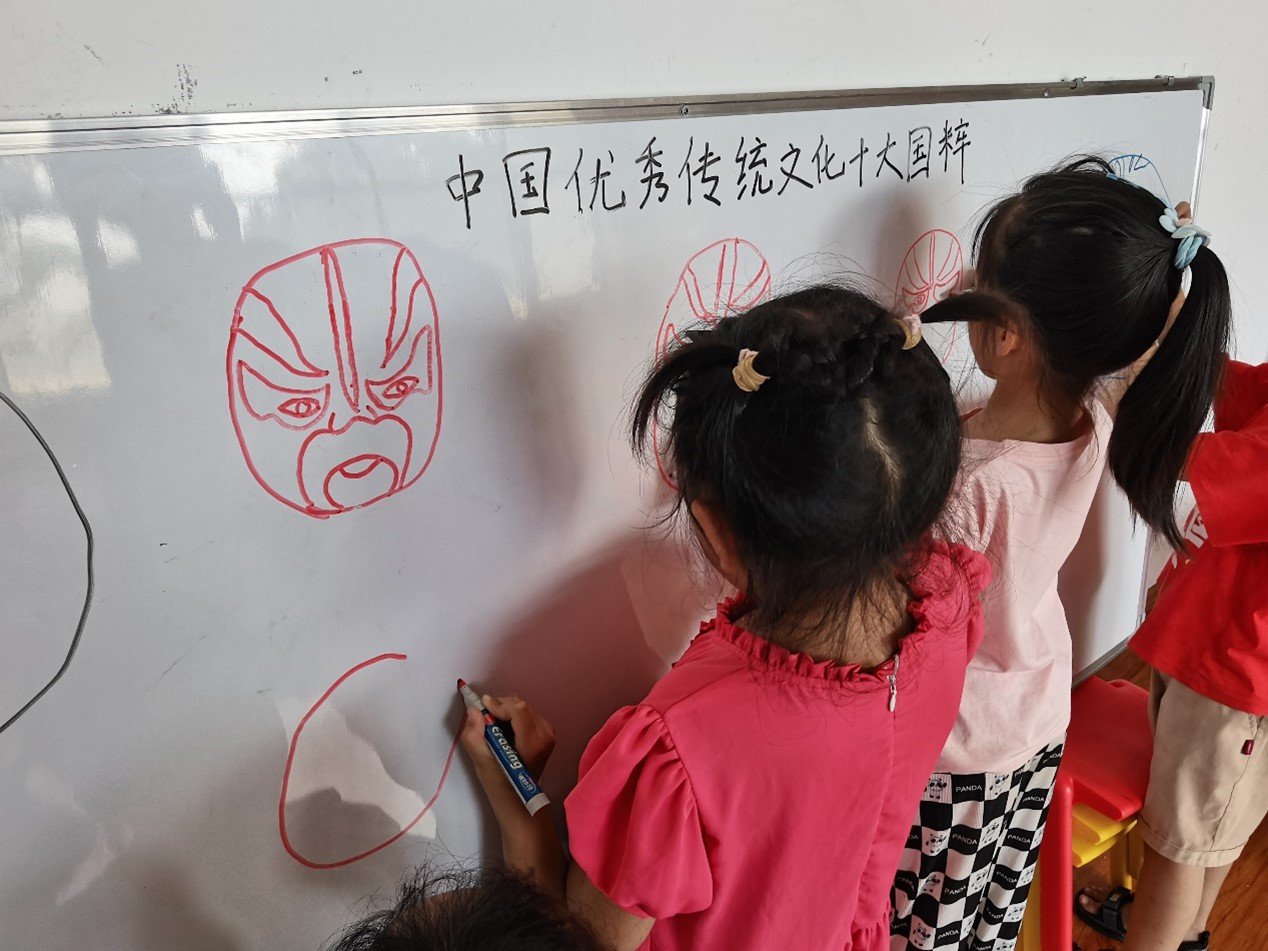 (通讯员 李鑫欣)为传播中华优秀传统文化,7月28日,湖北第二师范学院四叶草青年志愿服务队第五小队开展有关中华优秀传统文化的课程,有绘画川剧脸谱,志愿者老师并解释其中的意义;有剪纸课,志愿者老师制作精美的课件,讲解剪纸的历史发展;还有皮影戏,志愿者老师在课堂让小朋友们沉浸式体验古人看戏的场景。这些活动在让小朋友体味中华传统文化的博大精深的同时,还让小朋友提高的动手能力。