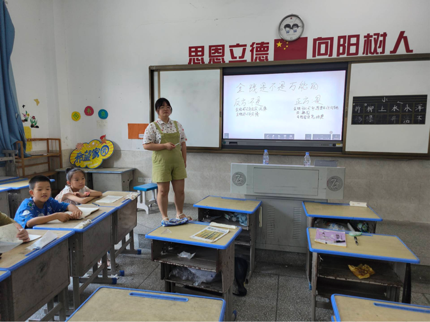 (通讯员 黎思)小学阶段是培养孩子“金钱观”的重要时期,教师应重视对小学生的金钱观以及消费观的教育,让他们明白钱不是取之不尽用之不竭的,也不是万能的,更不是衡量价值的唯一尺度。为使小学生树立正确的金钱观,湖北第二师范学院赴监利市四叶草青年志愿者服务队志愿者于7月27日在监利思源实验学校教授以“金钱观”为主题的思政课。