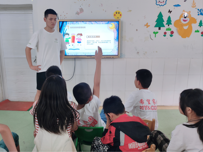 (通讯员 黎思)朱自清曾在《匆匆》一文中说过:“洗手的时候,日子从水盆里过去;吃饭的时候,日子从饭碗里过去。当你觉察它去的匆匆了伸出手遮挡时,它又从遮挡的手指间过去。天黑时,你躺在床上,它便伶伶俐俐地从你身上跨过,从你脚边飞走了。”为让学生们提高时间利用率,拥有时间观念。7月27日,湖北第二师范学院四叶草青年志愿服务队第九分队的志愿者在湖北省荆州市监利市分盐镇回市小学教授了一堂“珍惜时间”的教育课。