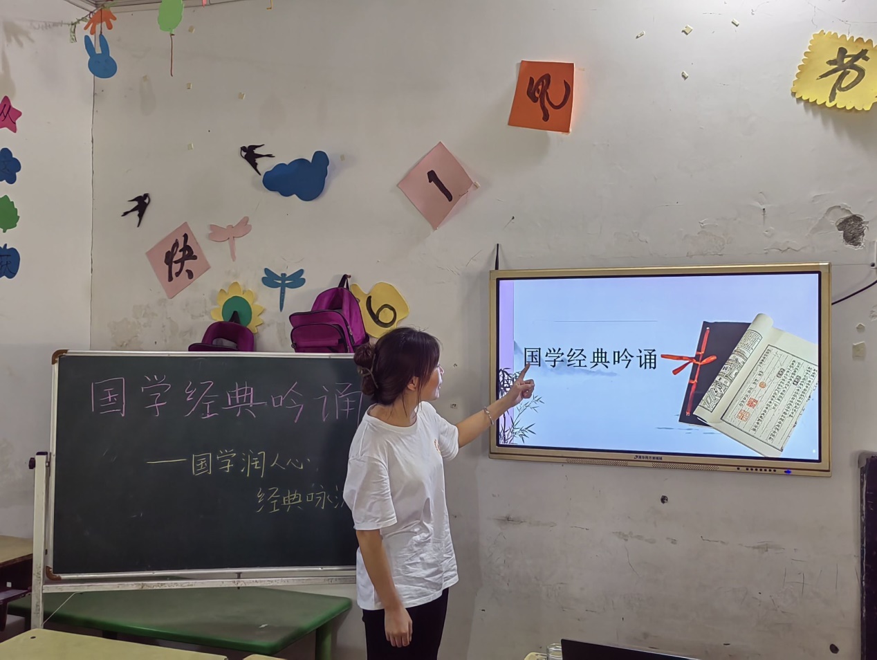 (图为志愿者教学国文经典吟诵课)