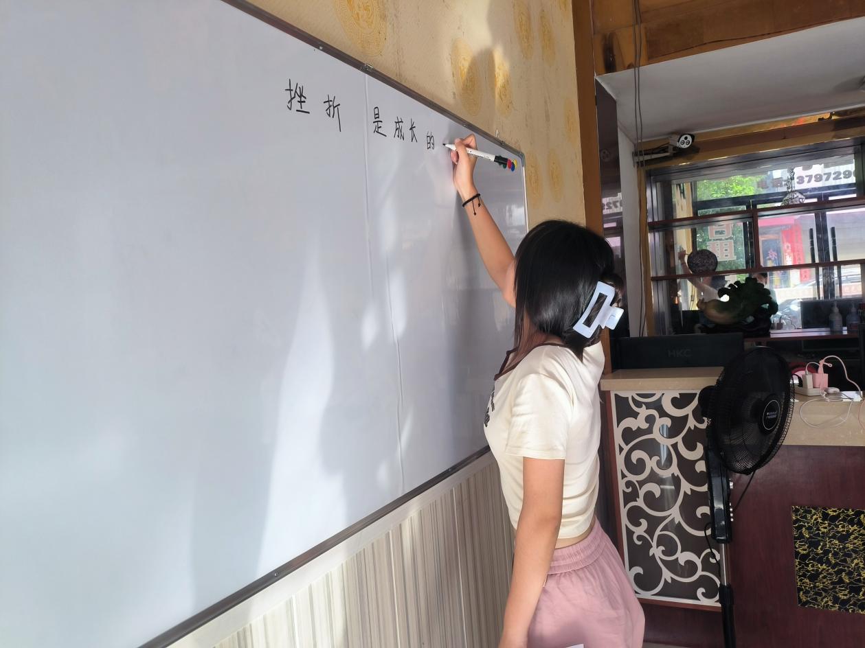 (通讯员 方登垅 李袁潇)为了让同学们在日常生活中能够正视挫折,用正确的态度和对策面对挫折,并寻找正确的方式解决挫折,认识到挫折的普遍性和必然性,湖北第二师范学院四叶草青年志愿服务队第三分队志愿者来到湖北省荆州市监利县分盐镇浩宇制衣厂暑期托管班为同学们带去了一节挫折是成长的必修课的课程。在上课之前,志愿者老师让同学们谈一谈自己心目中的挫折,同学们发挥自己的想象力,按照自己的理解,同学之间积极分享。在课堂上,志愿者老师对同学们的分享进行了简单的板书,并对重要知识点进行总结,同学们认真倾听,积极与志愿者老师互动。