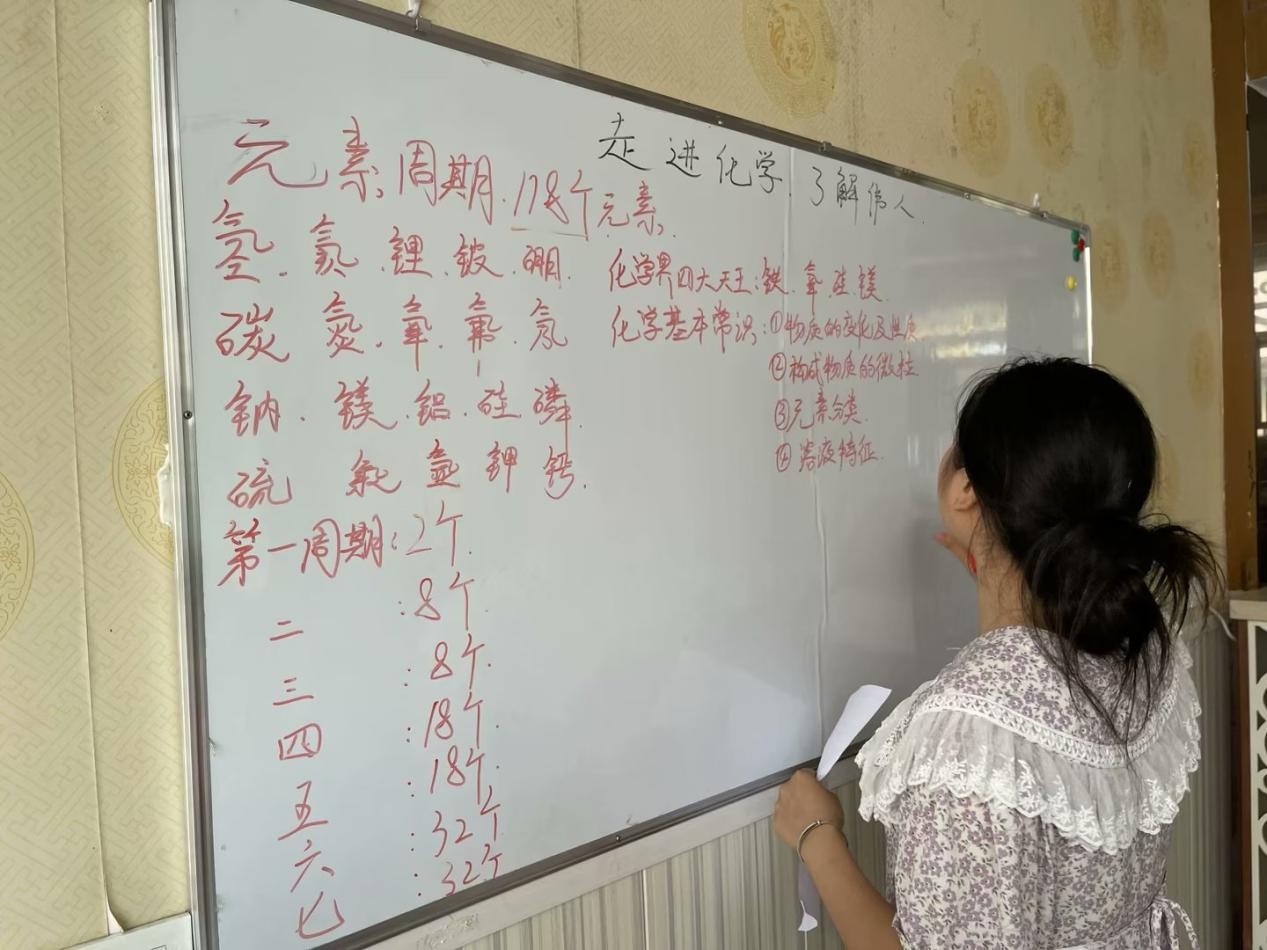 (通讯员 方登垅 李袁潇)化学是一门理论性与实践性都很强的学科,化学与大多数伟人的成就是紧密联系的。我们都知道,钱学森先生发明了中国导弹,“杂交水稻之父”袁爷爷,两弹元勋邓稼先先生等等,这些伟人的成就都离不开对化学的深层次研究,对化学的知识掌握。为了让同学们对化学产生兴趣,学习伟人成就,增强民族自豪感,培养爱国情怀,对化学的学习奠定坚实的基础,为后面学习化学做铺垫,湖北第二师范学院四叶草青年志愿服务队第三分队志愿者来到湖北省荆州市监利县分盐镇浩宇制衣厂暑期托管班为同学们带去了一节化学基础知识的学习课。在上课之前,志愿者老师带同学们观看了钱学森先生研究中国导弹的过程,即使当时的影片是黑白片,但同学们看的依旧很认真,并在看的过程中,忍不住向志愿者老师提出自己的疑惑。在课堂上,志愿者老师通过提问的方式,调动同学们的积极性,与同学们之间形成良性互动。同学们认真听讲,并对所学知识及时进行温习巩固,对化学产生了极大的兴趣。