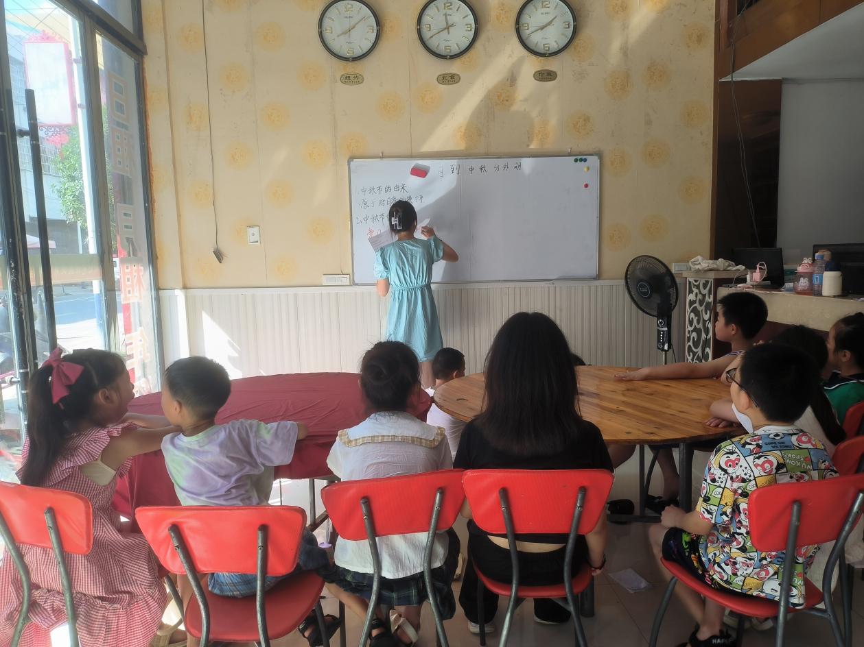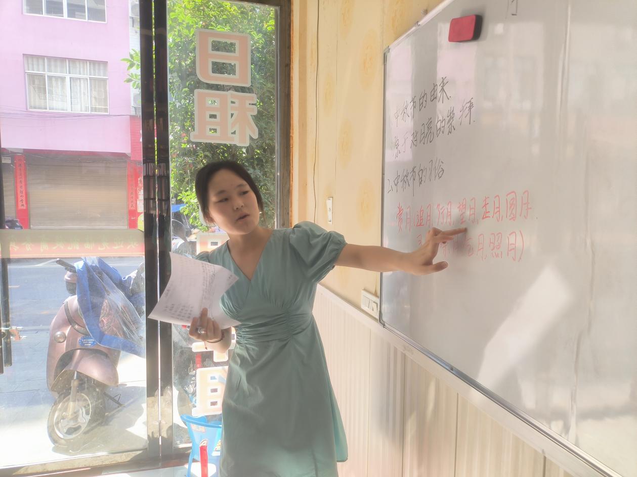 (通讯员 邹祺)为了弘扬中国传统节日,让孩子们能够了解和感受中华文化的博大精深,增强对中华文化的认同感和自豪感。7月31日,湖北第二师范学院四叶草青年志愿服务队第三分队在监利市分盐镇浩宇公司开展语文课课程,通过学习这一节语文课,孩子们领略到我国传统文化节日中秋节的独特魅力,这对弘扬中华中秋文化具有重要意义。