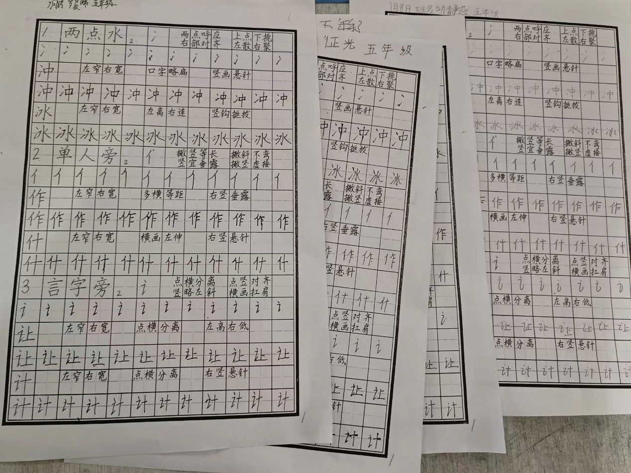 (图为四叶草青年志愿服务队志愿者黄萌萌进行硬笔书法课后部分学生作品)
