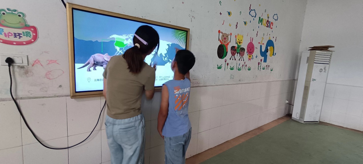 在课堂上,四叶草青年志愿服务队的志愿者们通过多媒体讲解课件,播放音频视频,设计分组竞争等方式,来激发学生的兴趣和团队协作能力。同时,志愿者们在课堂上频繁进行师生互动,激励同学们上台展示,营造以学生为主体的课堂氛围,促使学生成为课堂的主人。