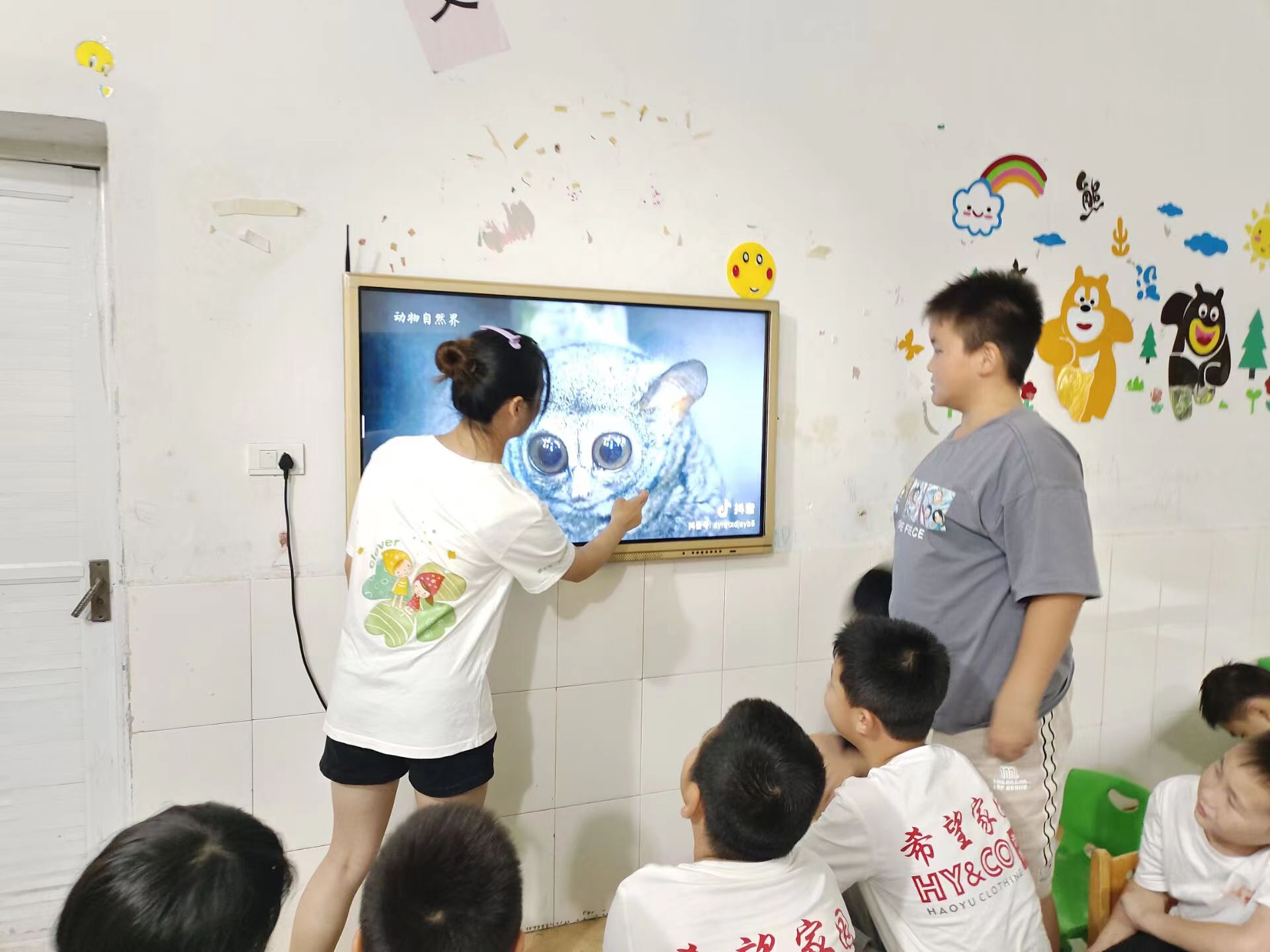 课堂的第一部分,由志愿者刘安娜为同学们介绍各国的国宝——泰国白象、日本朱鹮、新西兰几维鸟、瑞士圣贝尔纳狗……;同学们都是第一次了解到这些神奇动物,纷纷惊叹着,目不转睛地盯着老师。同时,小刘老师还为大家介绍一些“超出大家认知”的动物——比人高一倍的大骆驼,体积能和大象媲美的欧洲大洋马,体大如熊野猪,远看像恐龙且会奔跑的湾鳄……图片和视频穿插于课堂之中,课堂氛围和谐有趣。课堂的最后,小刘老师告诫大家:“野生动物是生态环境的重要组成部分,动物是大自然给予人类的珍贵自然资源,爱护动物是我们始终需要做的事情。”