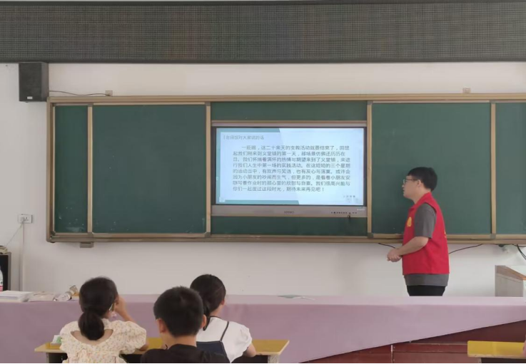 大学生志愿者代表发表了感人至深的感言,表达了对这次志愿活动的深刻感悟和收获,并制作了这次希望家园的纪念视频,和小朋友们一同观看。