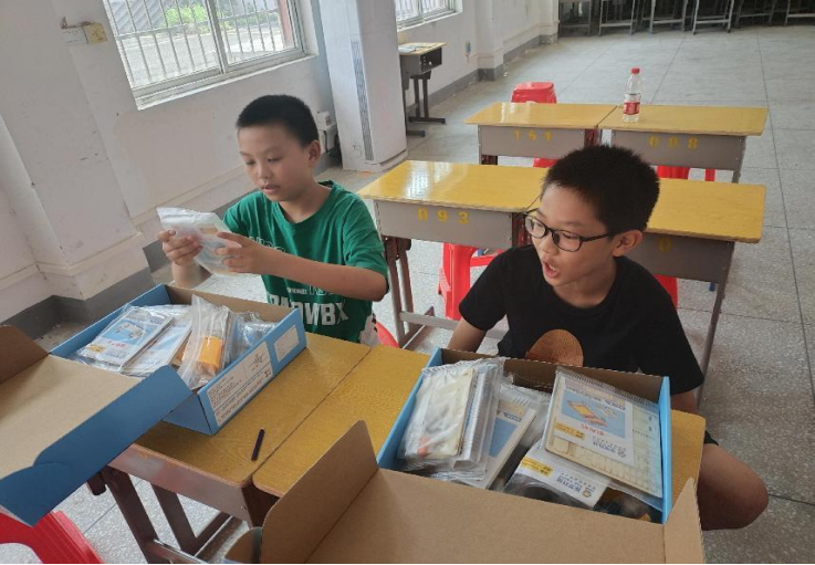 志愿者还联合义堂镇政府的工作人员给小朋友们发放了纪念礼物,小朋友们收到之后就迫不及待地拆开探究里面到底藏了什么惊喜。
