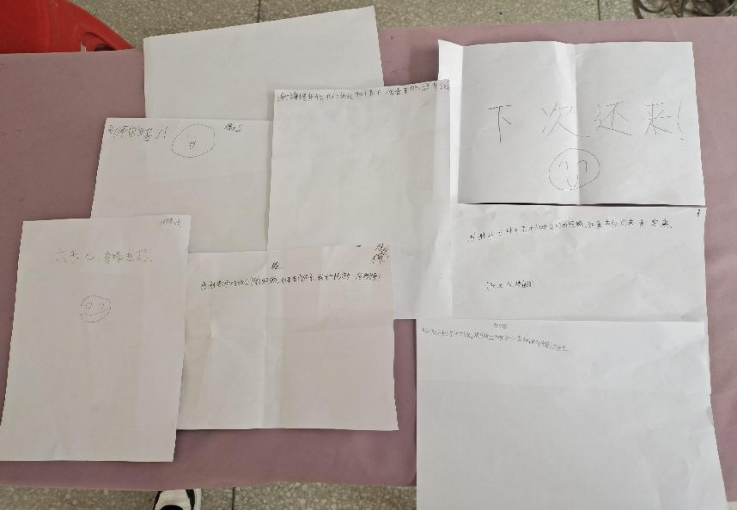 这三个星期的希望家园生活也给小朋友们留下了许多美好的回忆,在这临别之际,他们纷纷在纸上留下自己对老师说的心里话。