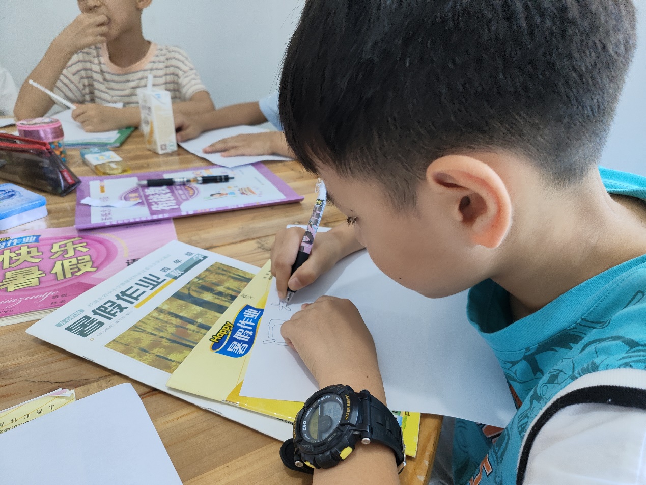 孩子们手握画笔在画纸上舞动着、绘制着。在缤纷的色彩碰撞中,孩子们大胆创作,将心中的奇思妙想画在纸上,一幅幅风格迥异、创意无限的画作跃然纸上,孩子们陶醉在创作的乐趣中。锻炼动手能力的同时,培养了他们的专注力、想象力和创造力,促进了身心和谐发展。