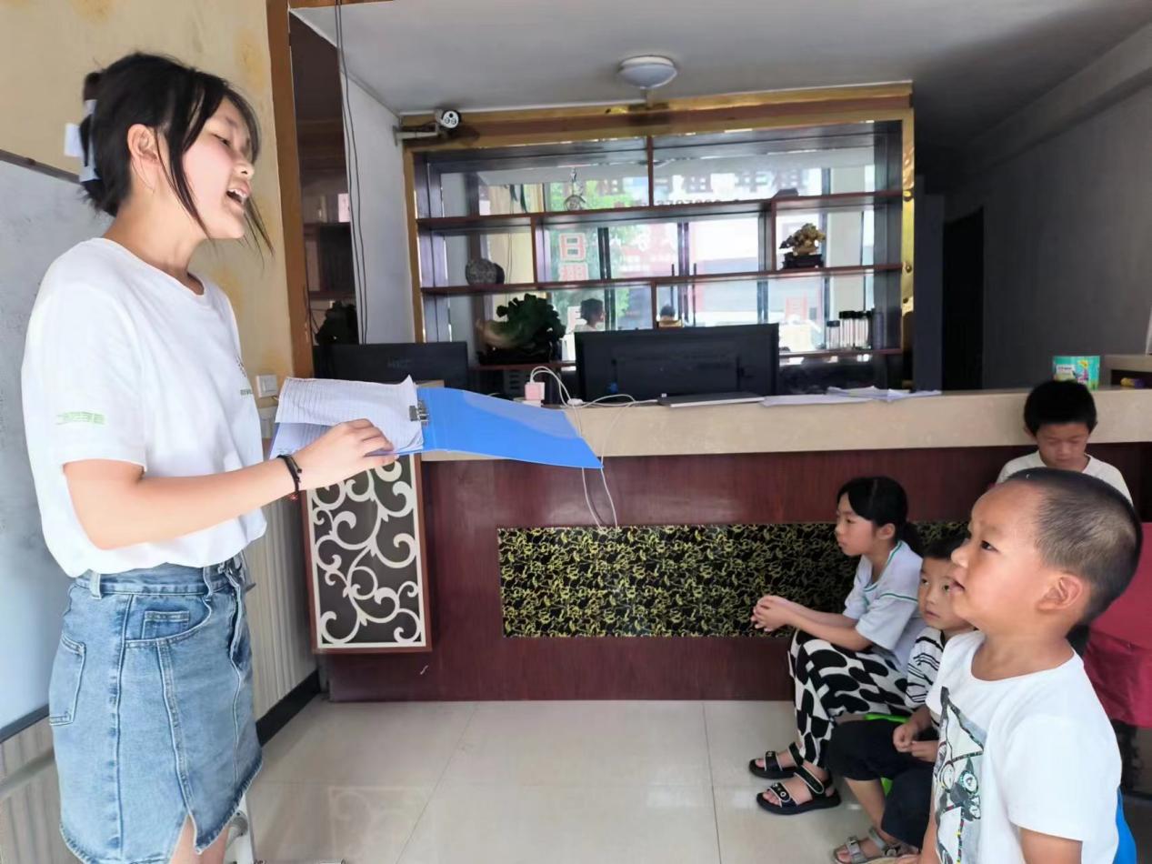 (图为志愿者老师认识新同学)