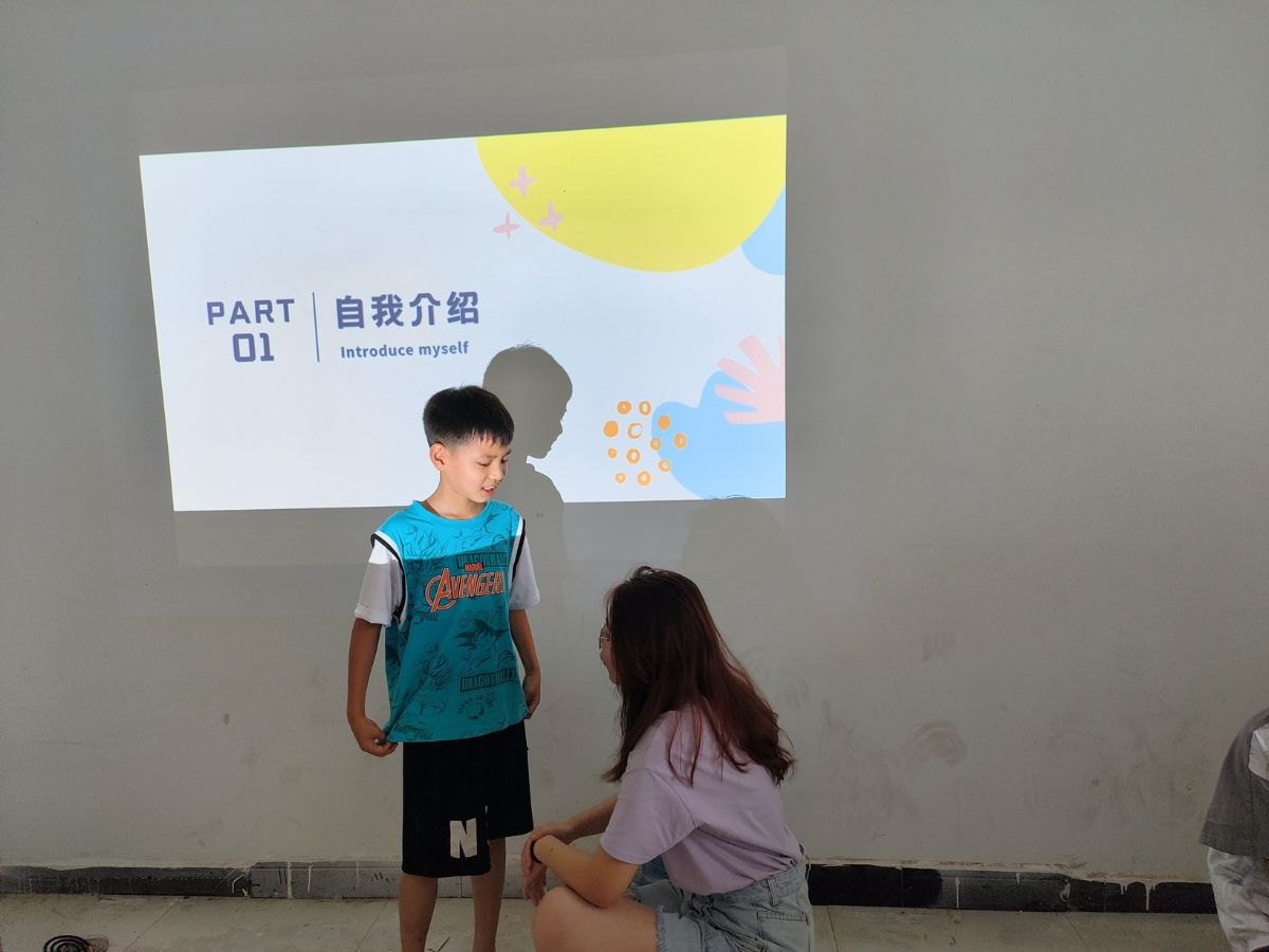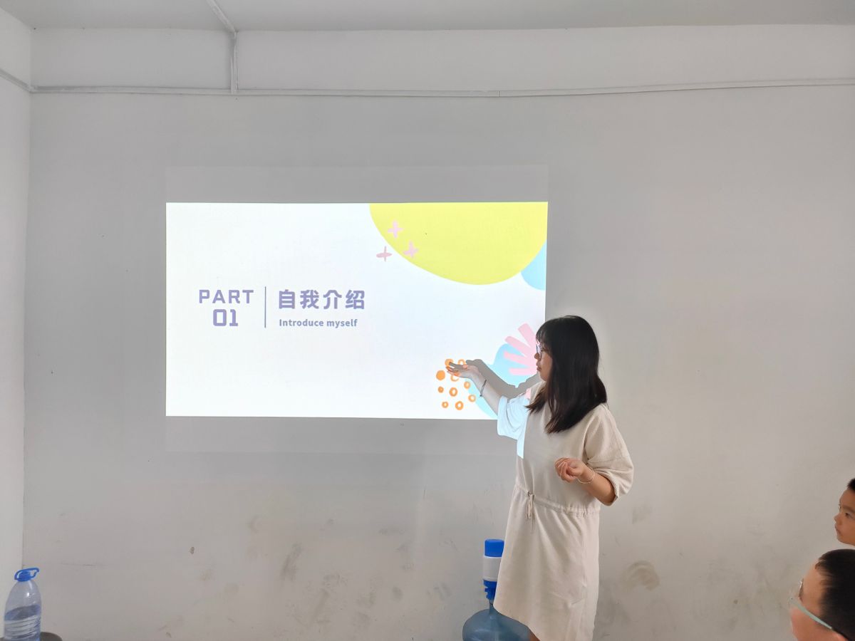 志愿者袁恭棁告诉小朋友们可以从姓名、年龄、爱好等方面进行自我介绍,然后她请小朋友们依次上台进行自我介绍。介绍完毕后,志愿者们和小朋友们都有了基本了解。随后,志愿者袁恭棁向小朋友们介绍了在今后的过程中会开展的课程,包括党史课、音乐课、舞蹈课等。同时,为更好地管理班级,营造良好的学习氛围,志愿者袁恭棁定下了几点规则,希望小朋友们都能自觉遵守。