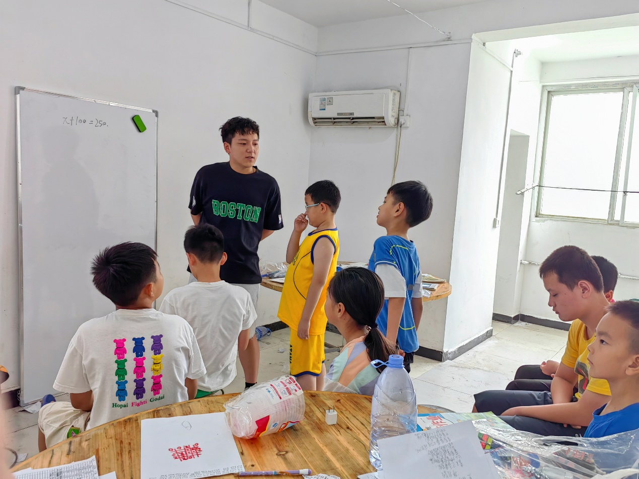 本次课程以拓展课外知识,培养兴趣爱好为主。志愿者开展了丰富有趣的趣味数学课上活动,在非常和谐愉快的氛围中,通过观察等探究活动,使学生初步建立数感,培养学生的观察能力和口头表达能力,激发学生的学习兴趣。数学课上,一个个灵动的思维在课堂上跳跃,孩子们的眼睛里充满了好奇心、求知欲和渴望学到新知识的光芒。活动以讲数学故事、猜谜语、趣味数学等形式进行,志愿者们耐心细致地解答孩子们的问题,跟他们讲解题目的解法,还教他们学会了对待数学问题要举一反三。最后,志愿者们满怀耐心,用简单易懂的方式积极引导小朋友们解决在学习过程中遇到的疑惑,教给他们正确有效的解题思路和学习方法。在学习的过程中,小朋友们专心致志,遇到疑惑时互帮互助,主动寻求志愿者们的帮助与解答,形成了浓厚的学习氛围。