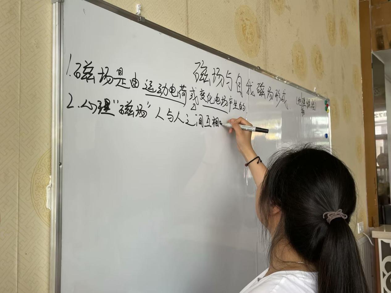 (通讯员 方登垅 李袁潇)磁场是一个神奇的东西,看不见,摸不着,却带给人们超多不一样的体验。磁场作为一种特殊的物质,让人们忍不住去深究,去探寻其中的奥秘。为了让同学们对磁场有一定的了解,感受磁场的神奇,认识磁场对日常生活的影响,学习磁场的魅力,懂的生活中的吸引力法则,并会在日常生活中学会运用磁场的知识,从而改变一些现状,湖北第二师范学院四叶草青年志愿服务队第三分队志愿者来到湖北省荆州市监利县分盐镇浩宇制衣厂暑期托管班为同学们带去了一节认识磁场的物理课。在上课之前,志愿者老师列举了生活中的一些常见现象,让同学们从这些现象中感受磁场的存在。在课堂上,志愿者老师拿简单的磁铁为同学们演示了磁铁的特性,同时还带同学们观看相应的视频,让同学们更直观的感受磁场的存在,简单的演示与理论知识的讲解让同学们对磁场的了解多半是模拟两可,加上视频,既让同学们更有兴趣,也加深了同学们的理解。