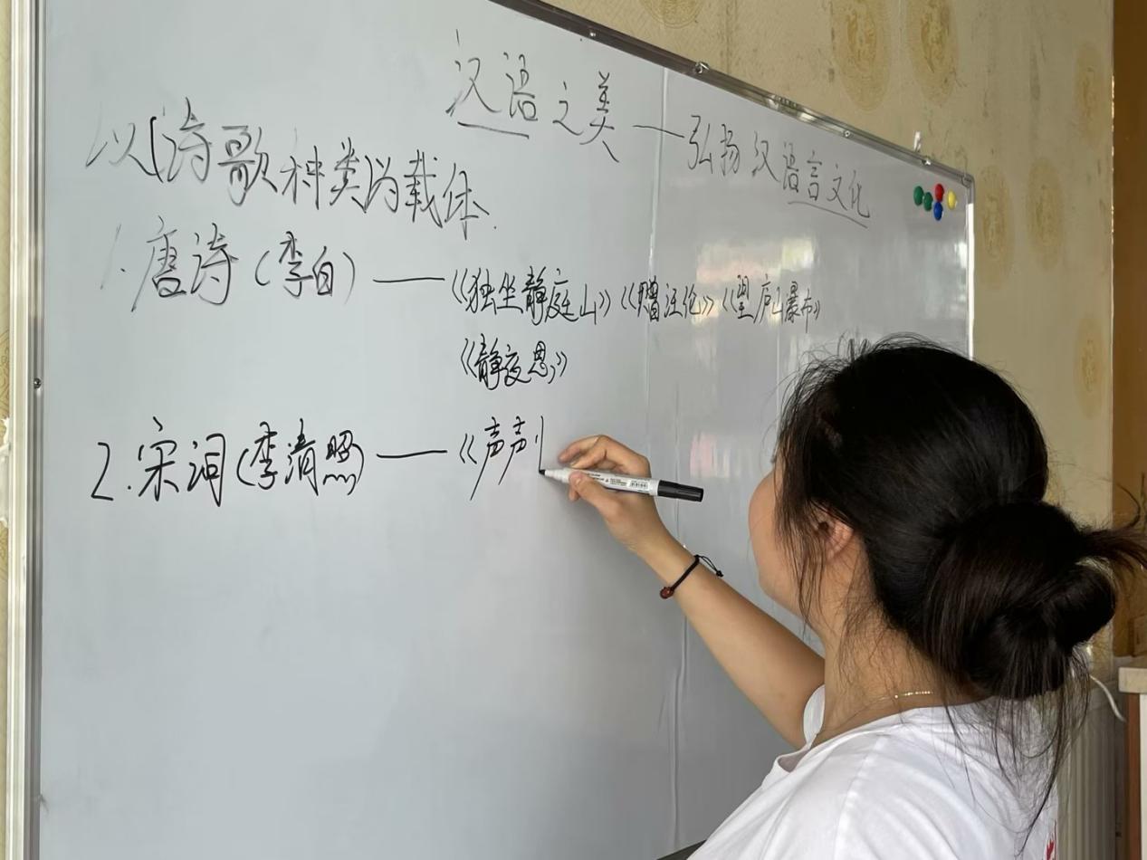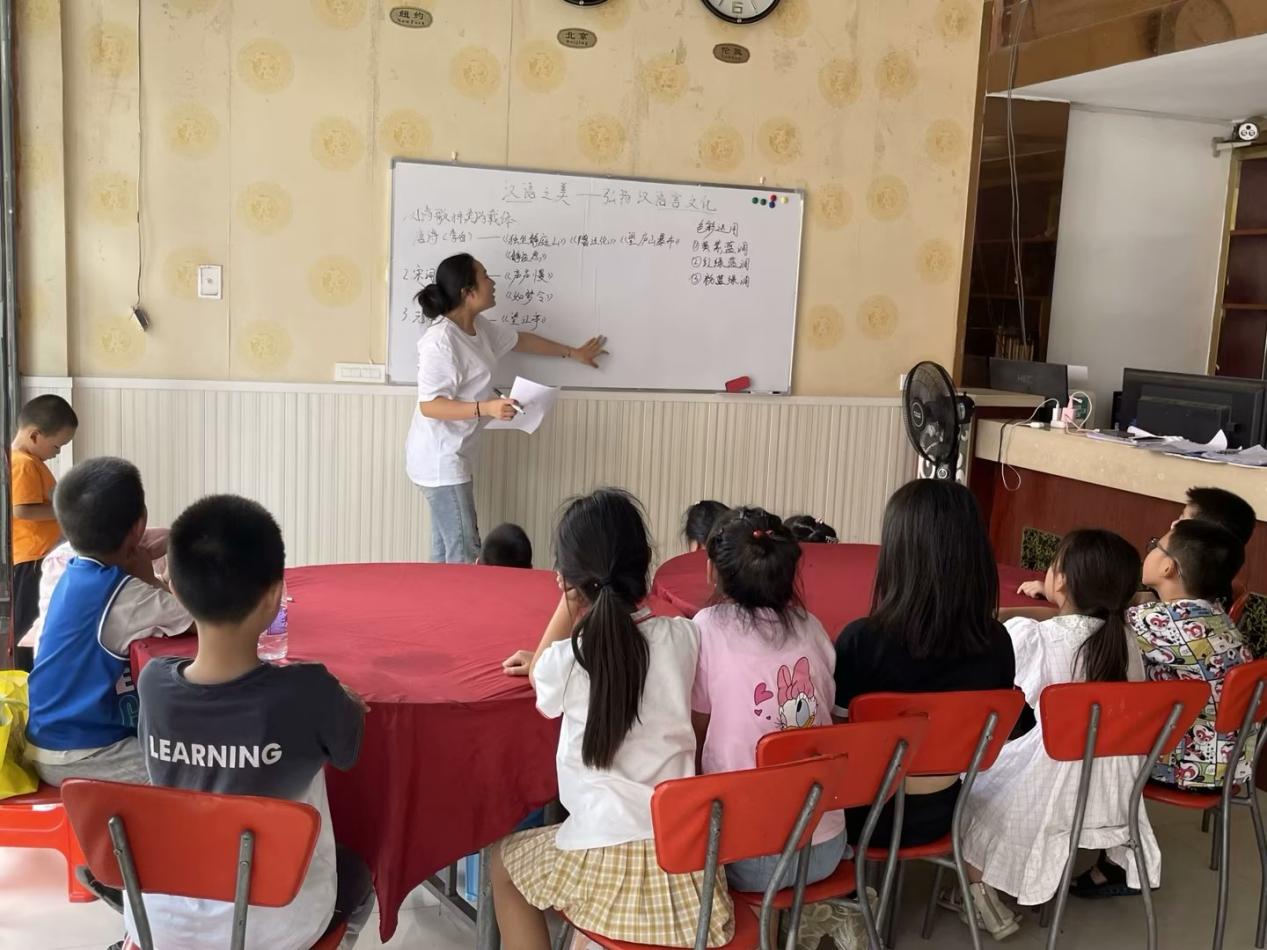 (通讯员 方登垅 李袁潇)弘扬汉语言文化是传承中华优秀传统文化的重要表现之一,中华优秀传统文化是中华民族的精神命脉,是中华民族的文化根脉,也是我们在世界文化激荡中站稳脚跟的坚实根基。为了让同学们做好中华传统文化的传承人,了解中华传统文化的优秀,增强民族自豪感,体会中华文化的博大精深和源远流长,理解中华优秀传统文化的核心思想理念、人文精神和传统美德,弘扬民族精神,学习和理解社会主义先进文化和革命文化,坚定文化自信,湖北第二师范学院四叶草青年志愿服务队第三分队志愿者来到湖北省荆州市监利县分盐镇浩宇制衣厂暑期托管班为同学们带去了一节弘扬汉语言文化的知识拓展课。