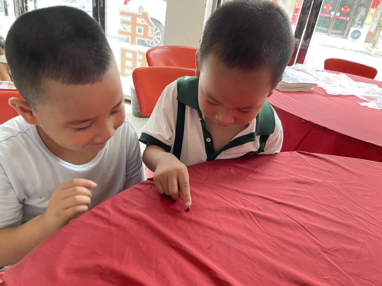 (图为同学们课后观察小动物)