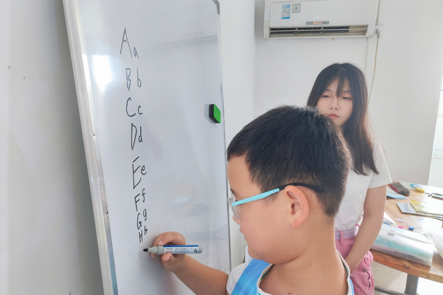 (通讯员 袁恭棁)7月12日上午,湖北第二师范学院四叶草青年志愿服务团队第五分队在监利市红城乡浩宇制衣中心开展英语基础教学活动,一步一个脚印从基础打起,逐字逐句教导学生们学习英文字母及引申单词,效果显著。志愿者们发现教学中必须做到让学生明白、会用,反复练习句型和单词,提高水平,从而使学生从愉快的情景中学到知识,提高对英语的学习兴趣!