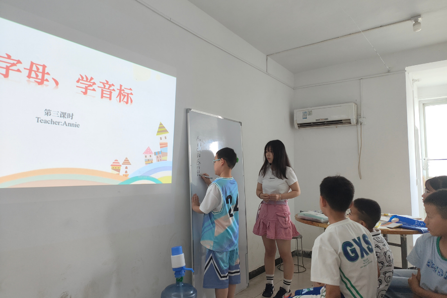 有了前几天的英语基础教学以及每天的复习记忆,志愿者们发现学生们能记忆的单词越来越多且记忆的精准性与速度得到了明显的提高,在志愿者老师们的鼓励下,孩子们激情高昂,上课回答问题也愈发积极,并且在志愿者老师劳逸结合、奖励机制的教学方法下,学生们开始有目的性的学习,抓住重点且努力主动记忆。志愿者们也会从激发学生学习兴趣入手,以便更好的因材施教,在学生们理解的基础上用技巧方法让学生们拓展记忆。