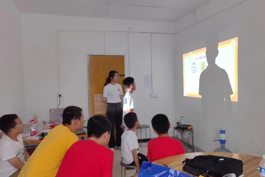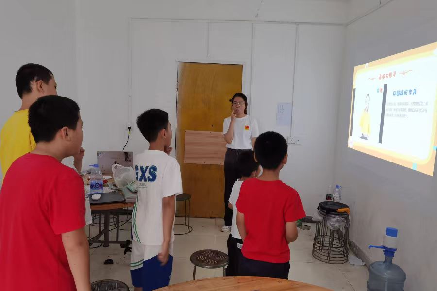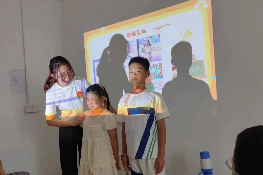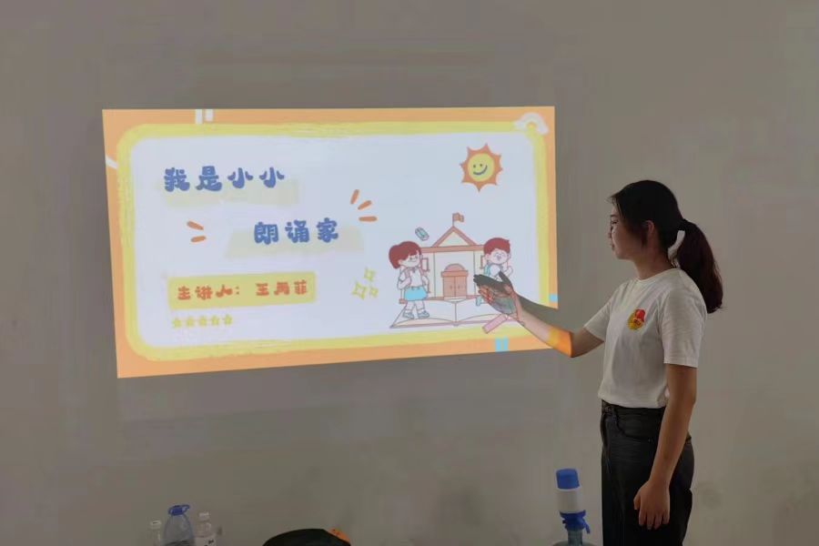 活动前,志愿者们引导学生们进行口部操热身活动,而后,带领学生们进行绕口令游戏活动,学生们都积极参与并享乐其中,最后推动学生们集体朗诵爱国主义诗词。在此次教学活动中,学生们都从中获得了自信,能够大方、大声地朗读出来,朗诵能力也得到了相应的提升,语言中的错误也得以纠正。学生们从中感受到文章独有的韵律和节奏,培养和感知了语言的美。尤其是朗诵内容,充满了爱国主义精神与民族情怀,小朋友们每每朗诵一遍就愈发的慷慨激昂,同时学生们也都记住了诗词的内容,在理解与深入作品的同时也潜移默化地了解作品的出处与背景,不断增加了知识储备,完成了对文字本身的知识积累,有助于提高学生的注意力,锻炼大脑的记忆功能。