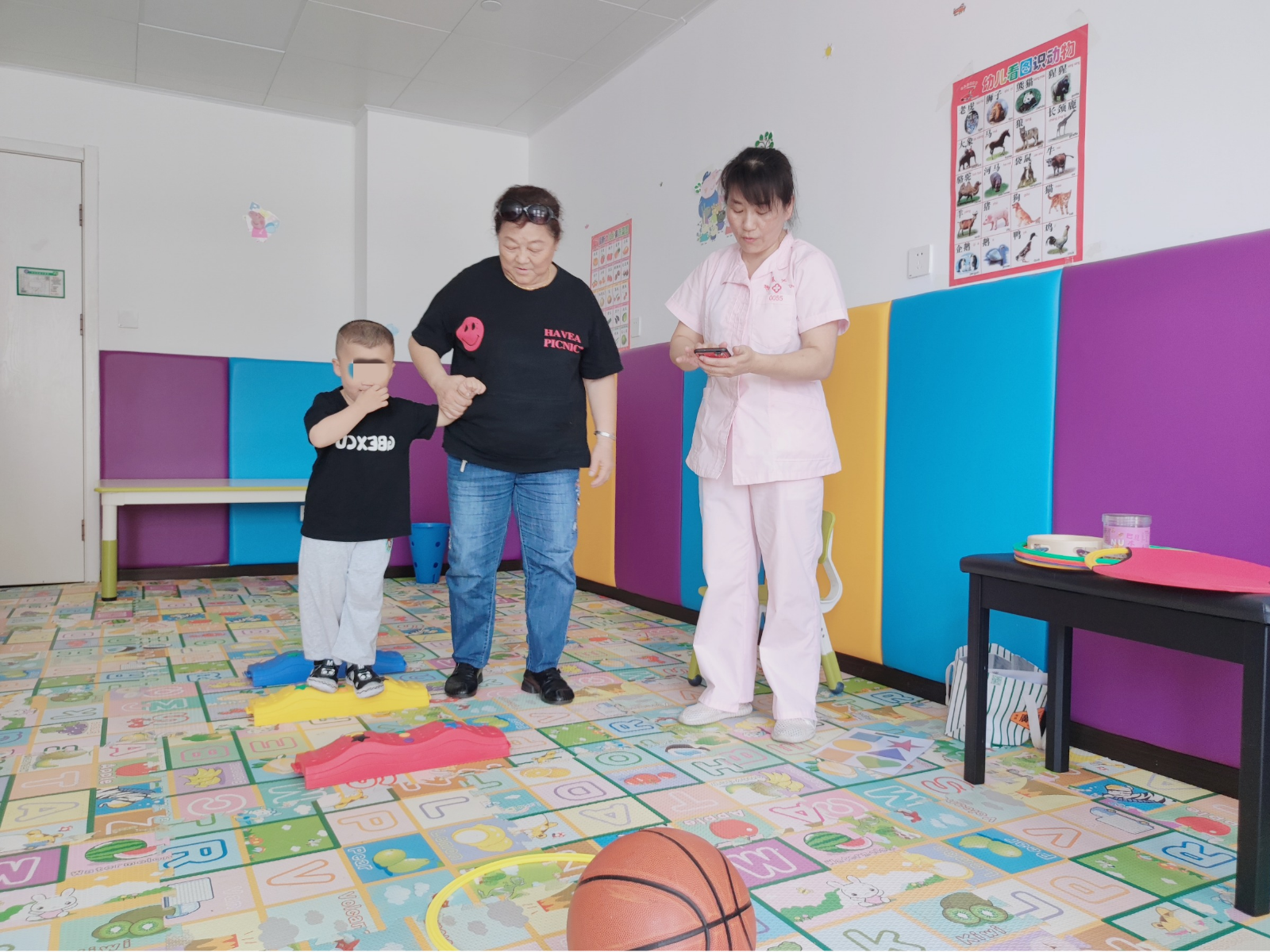 (图为儿童与家长一同参与教学过程)