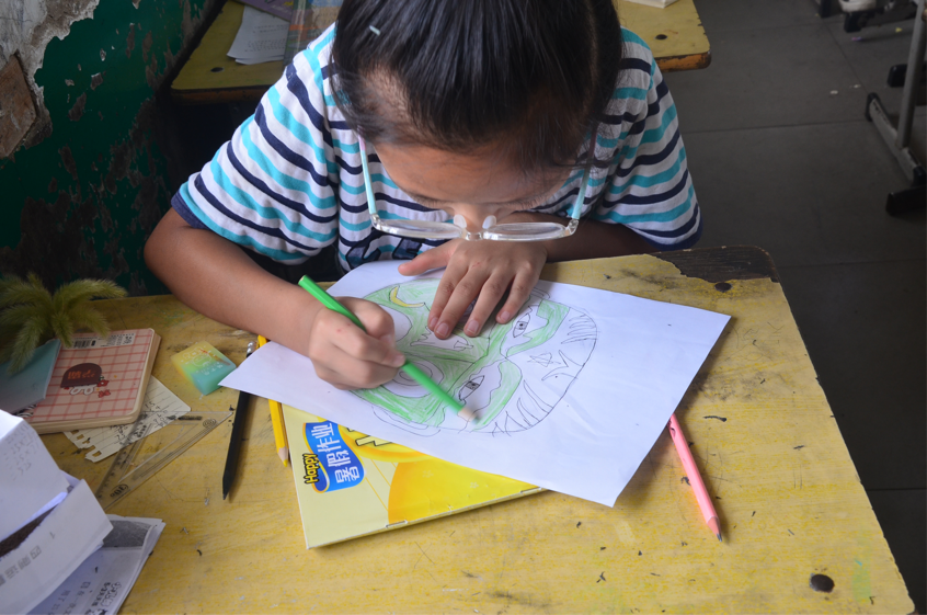 正式上课前,志愿者先给学生讲解:“京剧是中华民族的艺术瑰宝,剧的行当分为生旦净末丑······”。志愿者的讲解带领同学们走进脸谱的大千世界。由于脸谱图案非常丰富,每个部位的图案变化多端,有规律而无定论,所以志愿者让学生画出脸谱轮廓,然后进行上色,自己设计脸谱。同学们乐在其中,充分发挥自己的想象,创造出自己的脸谱。