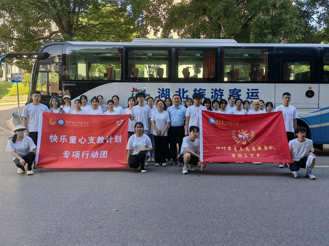 (图为四叶草青年志愿服务队从学校出发前往监利)