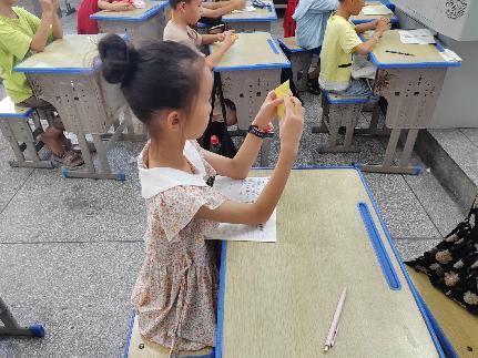 (通讯员 罗晗菁)7月30日,湖北第二师范学院四叶草青年志愿服务队第四小组为了让学生们劳逸结合,同时在乐趣中锻炼动手能力,明白用双手也可以获取新知识的道理,志愿者们用一节课的时间教孩子们折纸。一张张方方正正的彩色卡纸经过同学们的努力变成了小船,千纸鹤,方盒,同学们在收获快乐的同时也将折纸作品赋予了劳动果实的意义,表现出了对自我创作的珍惜之情。(图为志愿者用图例步骤与示范进行步骤教学)(图为学生跟随志愿者的步骤认真完成叠纸)
