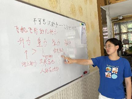 (通讯员 罗晗菁)7月27日,湖北第二师范学院四叶草青年志愿服务队第三小组以开发学生逻辑思维与分析能力为主旨,用小学生更加通俗易懂的方式通过具体举例飞机的飞行,为学生剖析了力的分类与原理,让抽象思维具体化,即使同学们都是第一次接触到物理学中的力,也能通过自己的思维了解力的原理。志愿者以儿童最易吸收的方式将知识生活化,为今后的学习探索打下了坚实的基础。(图为志愿者为学生简单概括力的种类并分别解释其原理)(图为志愿者用具体、简单易懂的事例为学生解释力的表现形式)