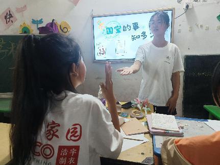 (通讯员 罗晗菁)7月25日,湖北第二师范学院四叶草青年志愿服务队第一小组以开拓学生视野,拓宽学生常识面积为主旨,开展了一堂认识多国国宝的趣味课堂。同学们通过志愿者的讲解,观看影像资料与模仿国宝环节,对各国国宝有了全新的认知,这也是他们第一次认识到其他国家的国宝,也初步的了解到了不同动物对于国家的意义,虽然坐在回市小学的课堂里,但是学生们已经跟随老师游览了世界。