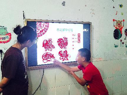 (图为学生上台发言阐述自己认为的剪纸的特点)